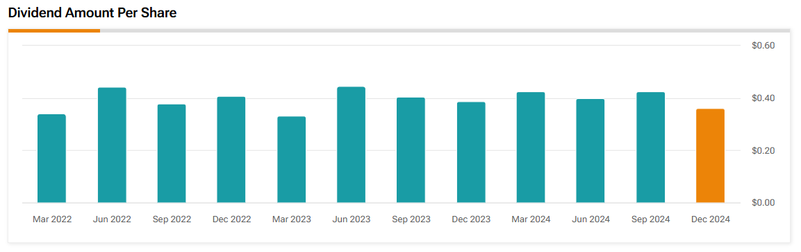- 2024년 12월의 배당금은 이전 분기보다 약간 감소한 것으로 보이며, 장기적으로 안정성 유지의 기조는 유지됨.