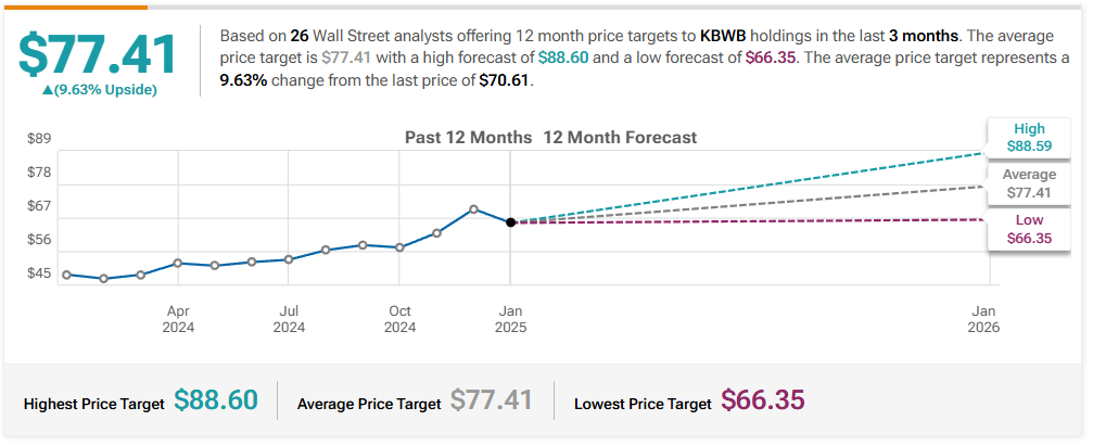 최근 3개월 동안 26명의 월가 애널리스트들이 제공한 KBWB의 목표 주가는 다음과 같습니다: