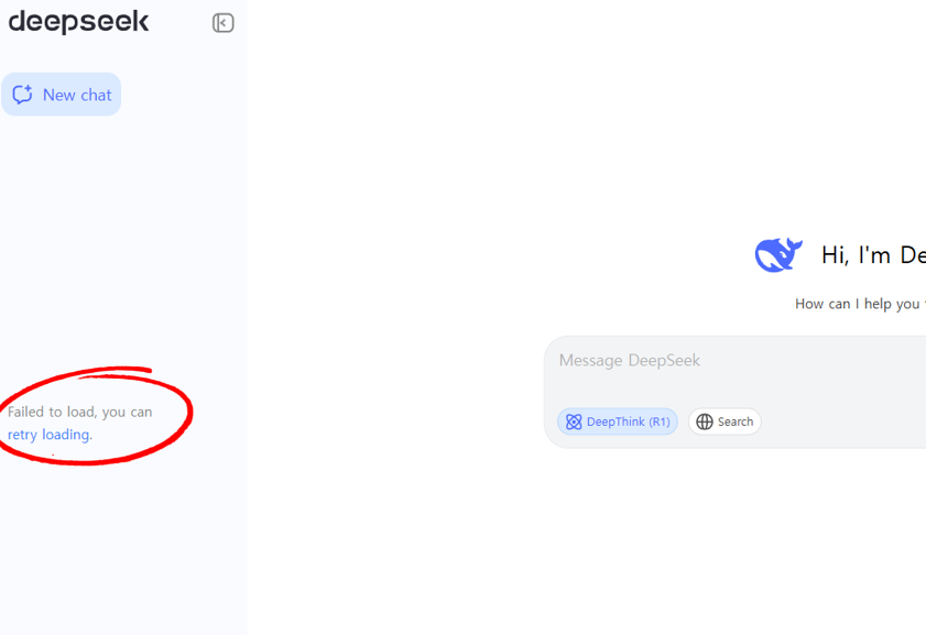 처음에 딥시크를 켰을 때 Failed to load, you can retry loading이 뜨는 경우가 있습니다.