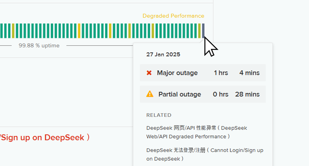 위 버튼을 눌러서 DeepSeek status 사이트로 이동하세요.